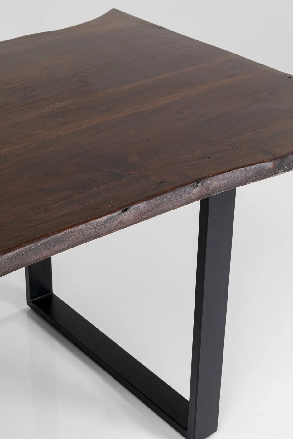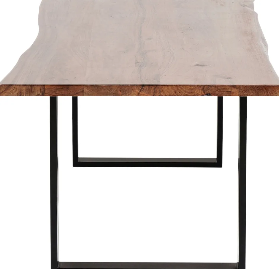 - Rechteckiger Esstisch aus Echtholz mit einem schwarzen Stahlgestell in Kufenform