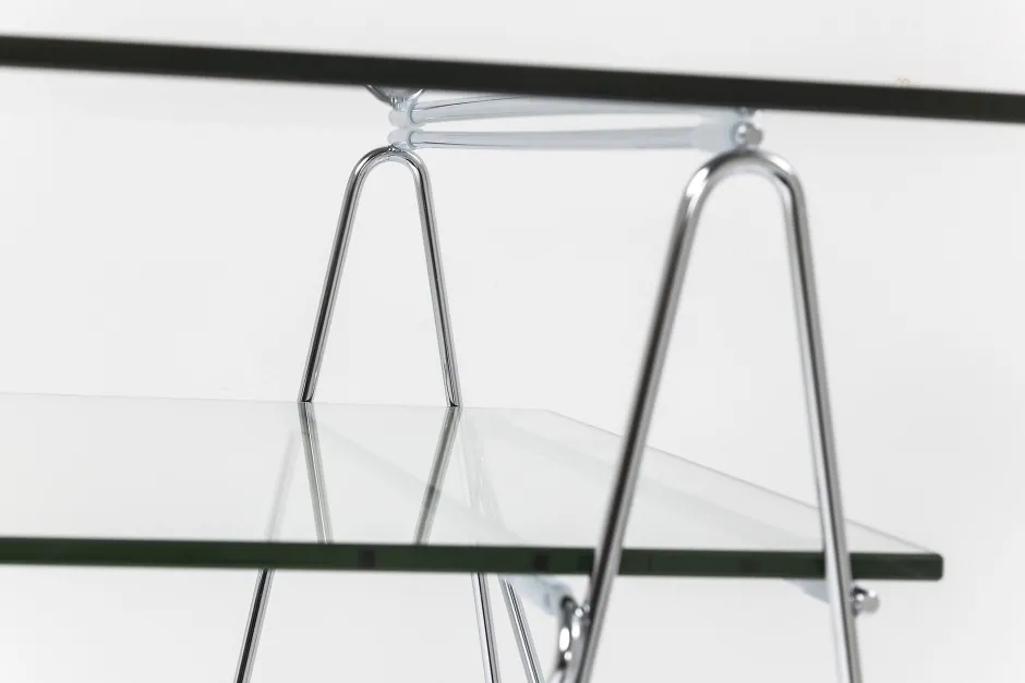 - Filigrane Optik: Als Träger der Glasplatten aus klarem Glas dienen zwei raffiniert konstruierte Gestelle aus Stahl