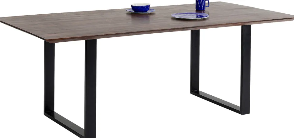 - Rechteckiger Esstisch aus dunklem Massivholz mit schwarzem Kufengestell, 76 x 200 x 100 Zentimeter (H/B/T)