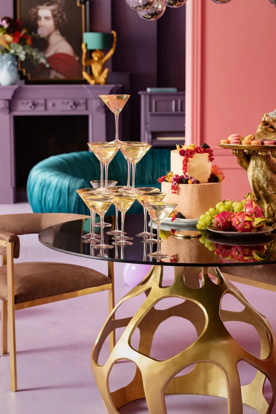 - Die Kombination aus goldfarbenem Fuß und rauchig getöntem Glas steht für luxuriöses Understatement