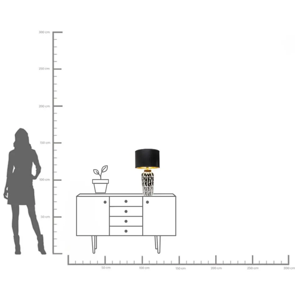 - Glamouröse Tischleuchte mit Motiv in Schwarz-Weiß und Gold, 71 x 40 x 40 Zentimeter (H/B/T)