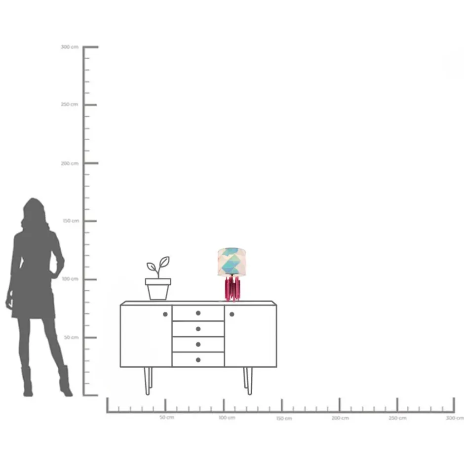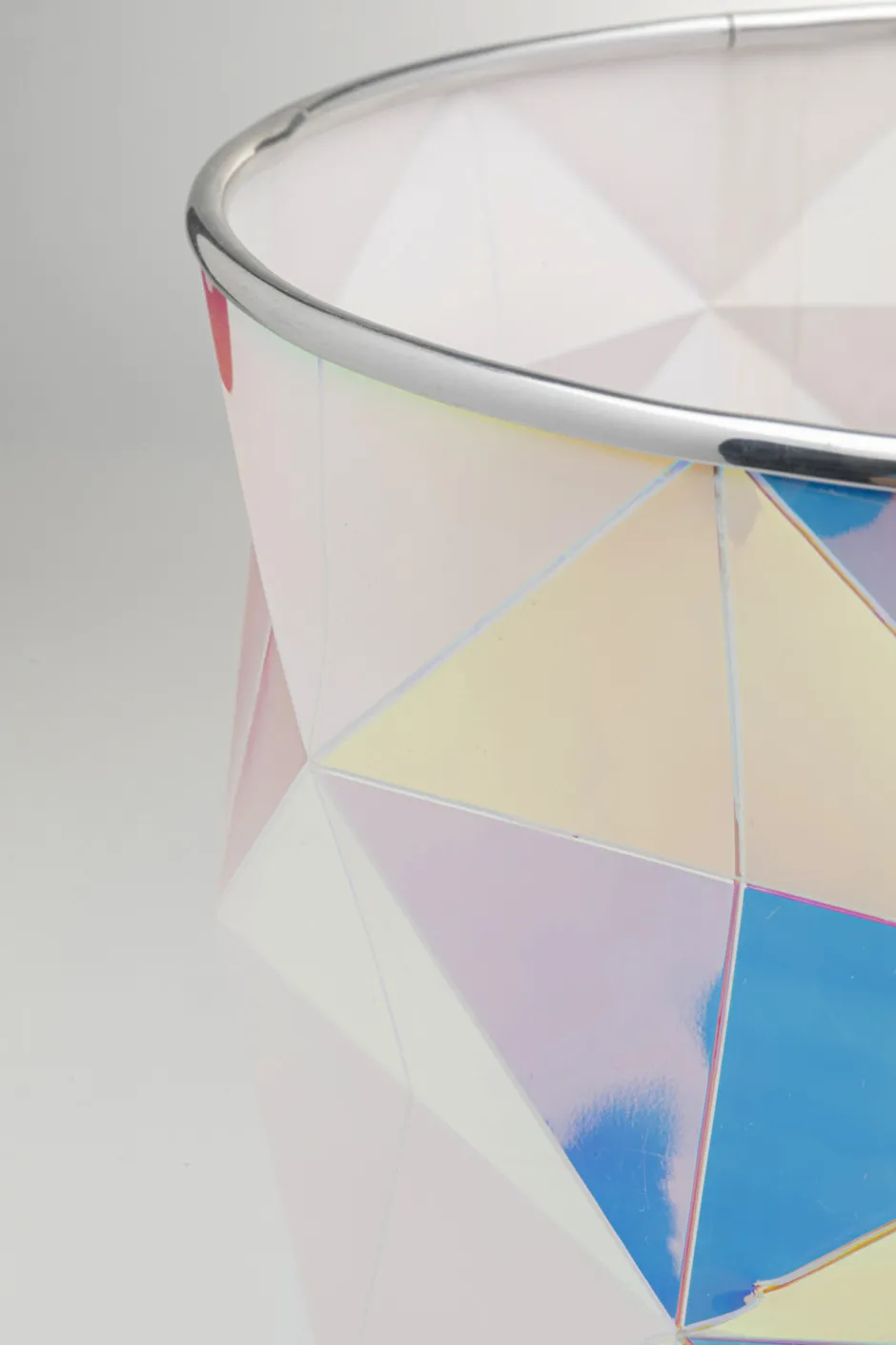 - Der geometrisch geformte Lampenschirm vereint harmonisch und schimmernd die Nuancen von Rosa, Blau und Weiß
