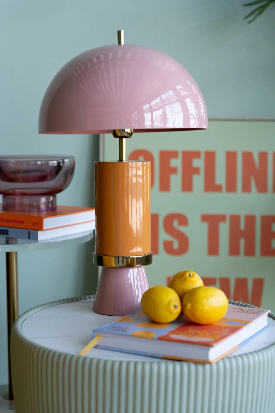 - Tischlampe in Pink und Orange mit rundem Schirm, 51 x 30 x 30 Zentimeter (H/B/T)