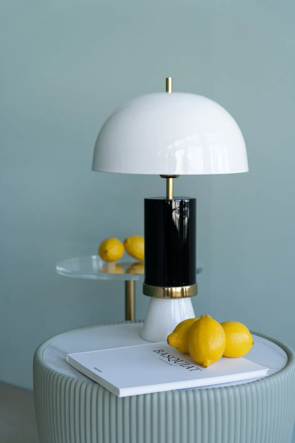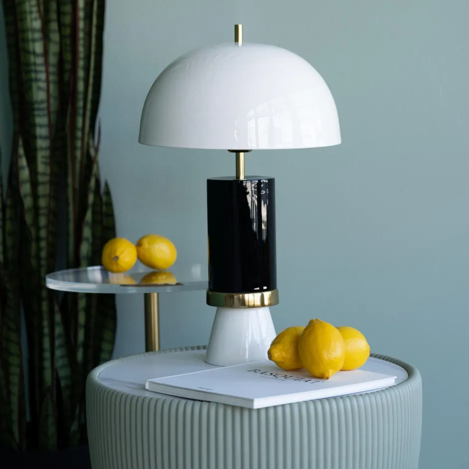 - Große Tischlampe in Schwarz-Weiß mit rundem Schirm, 51 x 30 x 30 Zentimeter (H/B/T)
