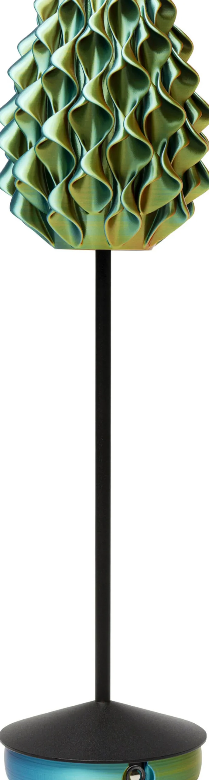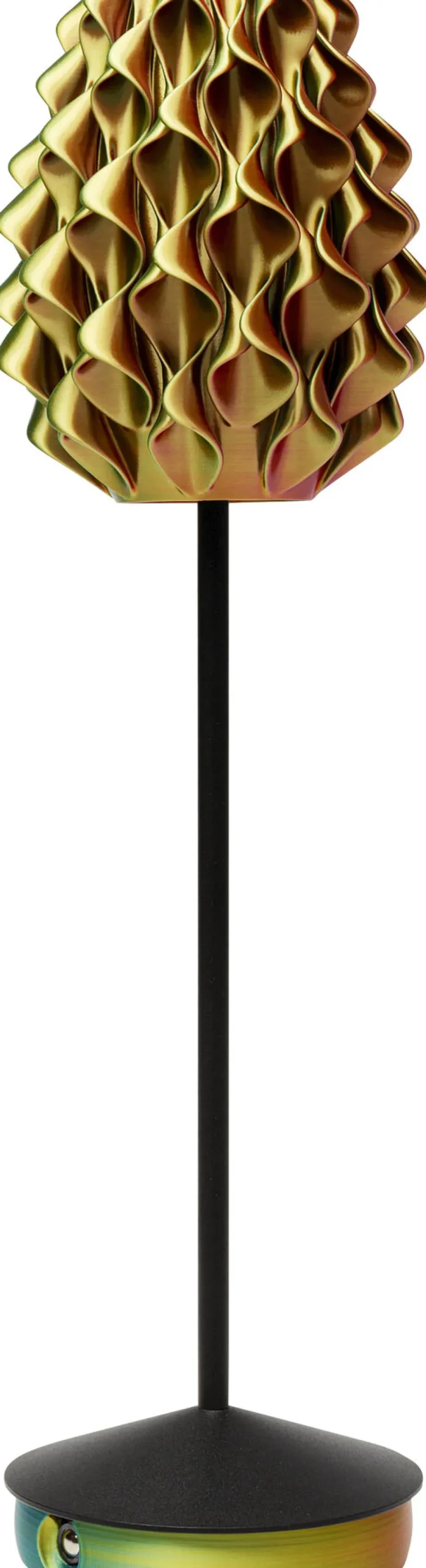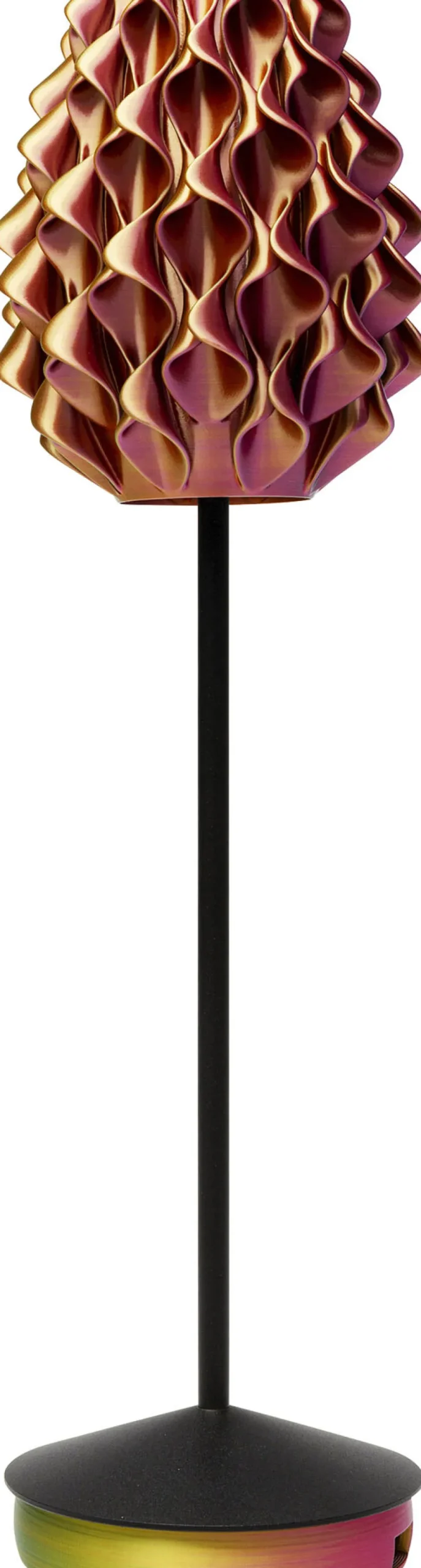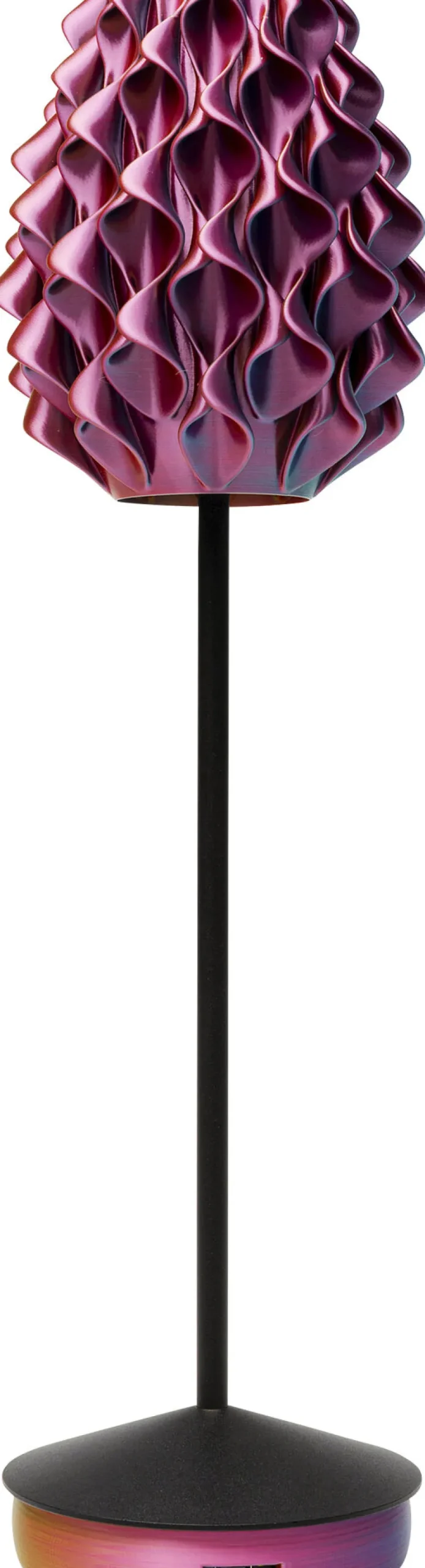 - Der Lampenschirm begeistert mit seiner außergewöhnlichen Form und schimmert je nach Lichteinfall in bunten Farben