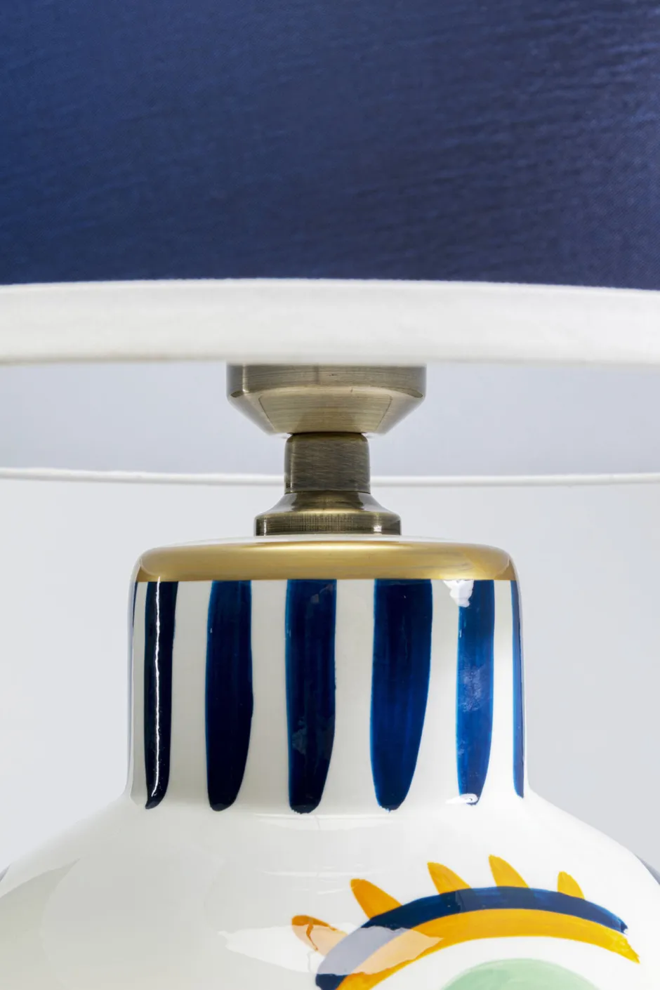 - Der blaue Lampenschirm mit feiner Umrandung in Weiß sorgt für eine angenehme Beleuchtung