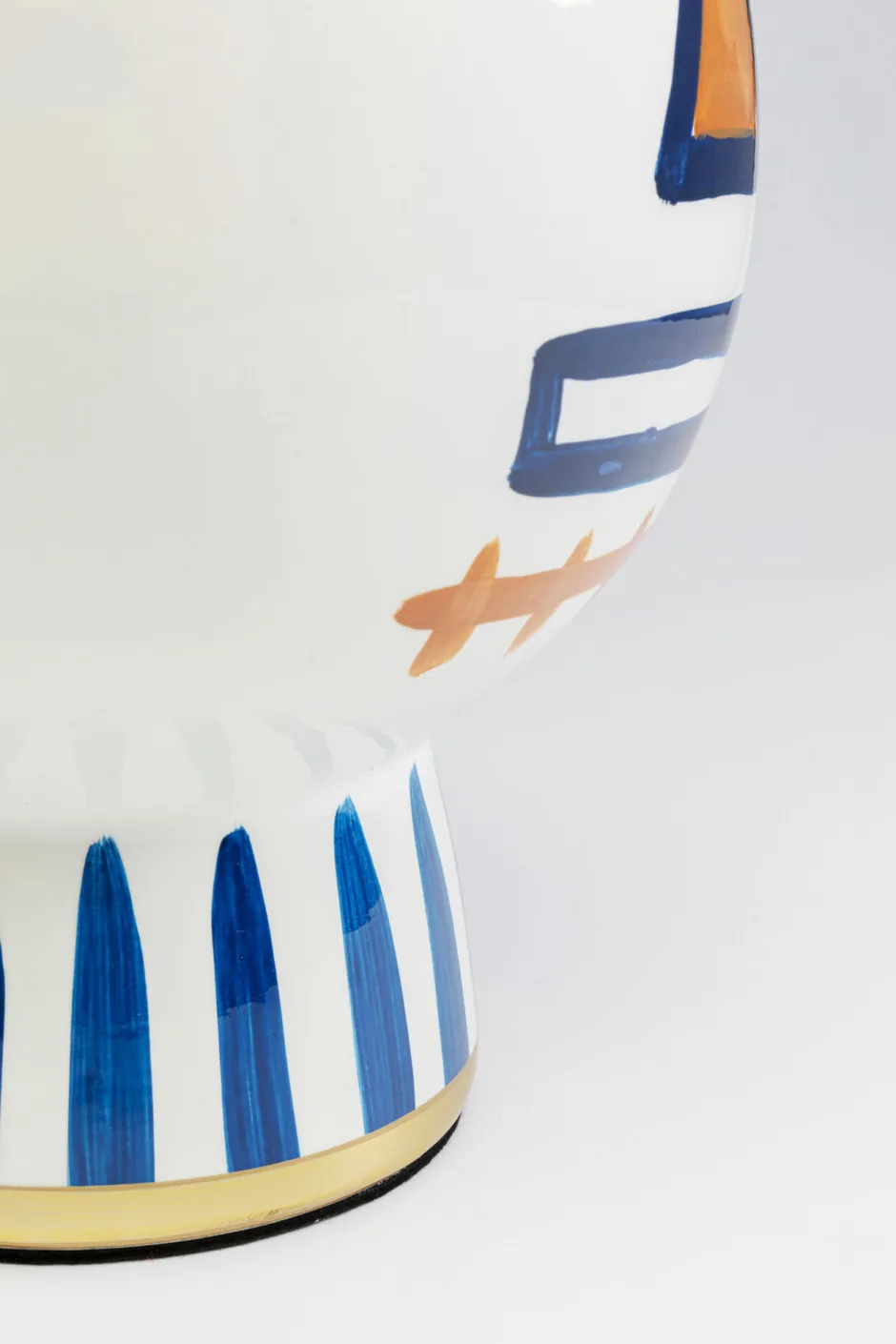 - Der Sockel mit abstraktem Gesichtsmotiv in satten Farben und goldenen Akzenten setzt künstlerische Akzente