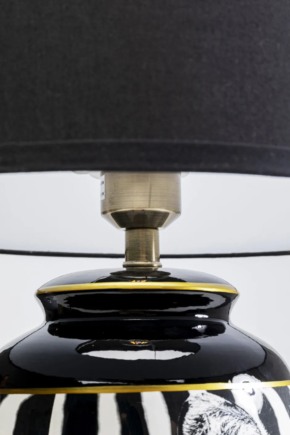- Der Sockel aus Porzellan begeistert mit seinem glänzenden Finish, kunstvollen Zebra-Motiv und glamourösen Gold-Details