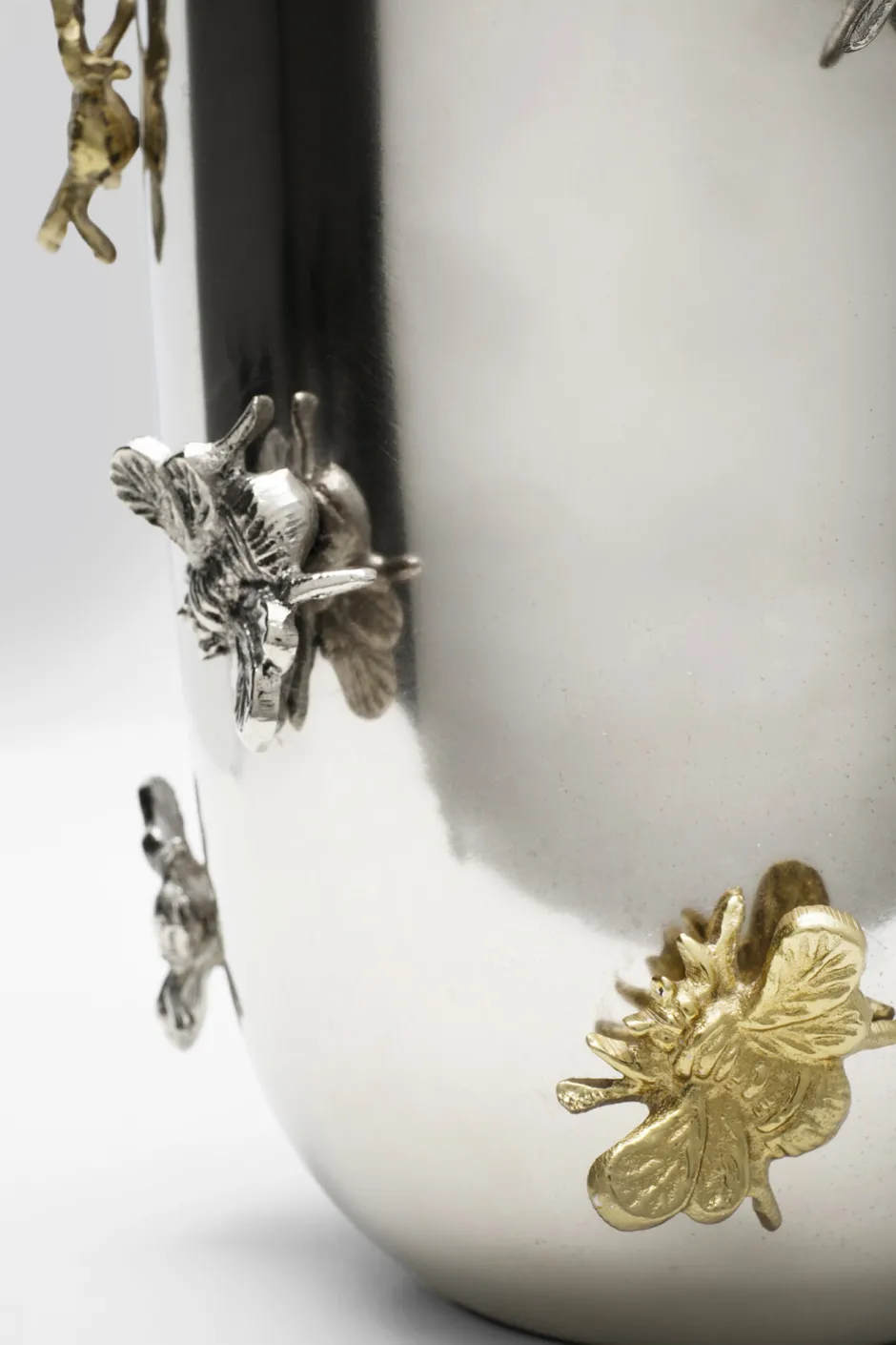 - Große Vase in Silber und Gold mit Bienen-Details, 46 x 23 x 23 Zentimeter (H/B/T)