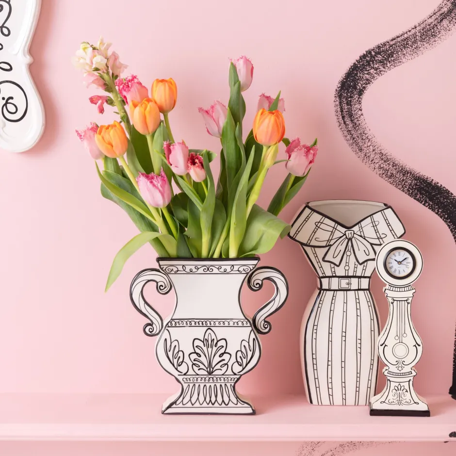 Vase Favola 24cm Schwarz-weiße Vase aus glasierter Keramik, 23.5 x 23 x 5.2 Zentimeter (H/B/T)Teils in Handarbeit herge…