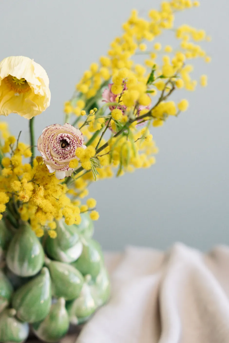 - Die Blumenvase im mediterranen Stil ist ummantelt von Feigen