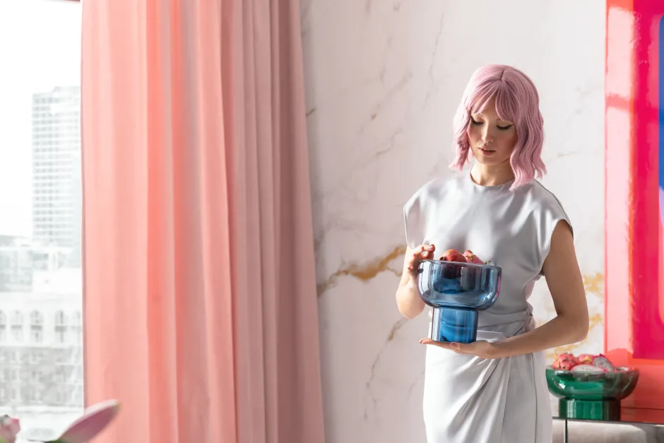 - Blaue Glasvase in Schalenform, 22 x 22 x 20.5 Zentimeter (H/B/T)