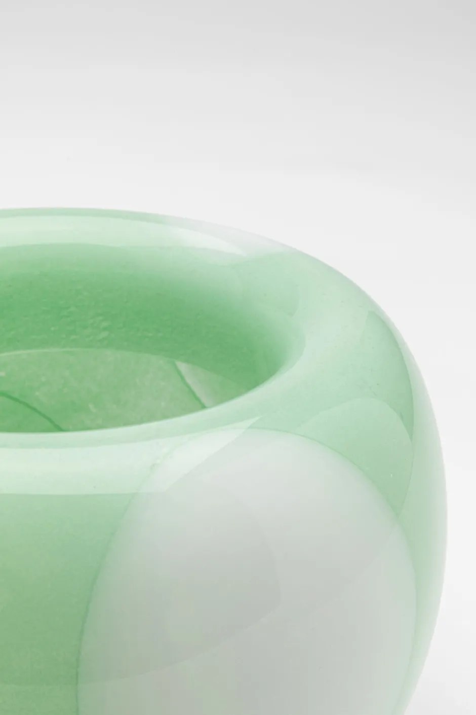 - In einem erfrischenden Pastellgrün mit weißen Akzenten und dank der abgerundeten Form setzt die Vase stilvolle Akzente