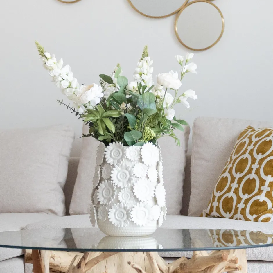 - Kleine Porzellanvase in Weiß mit Deko, 30 x 24 x 24 Zentimeter (H/B/T)