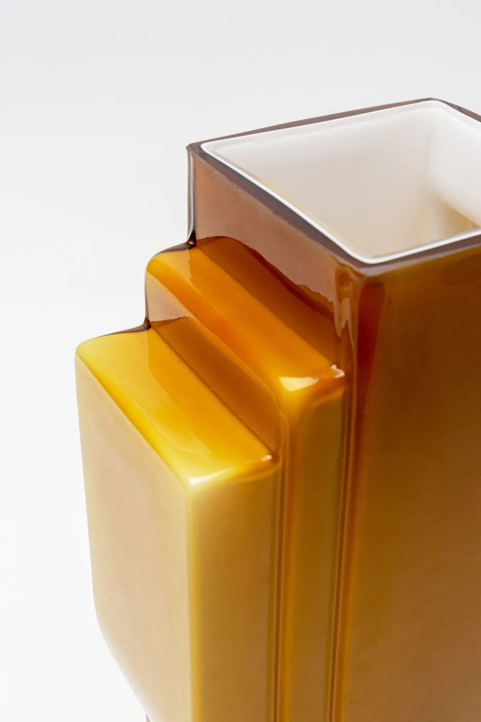 - Diese Vase in einem warmen Karamell-Braun begeistert mit ihrer geometrischen Formgebung