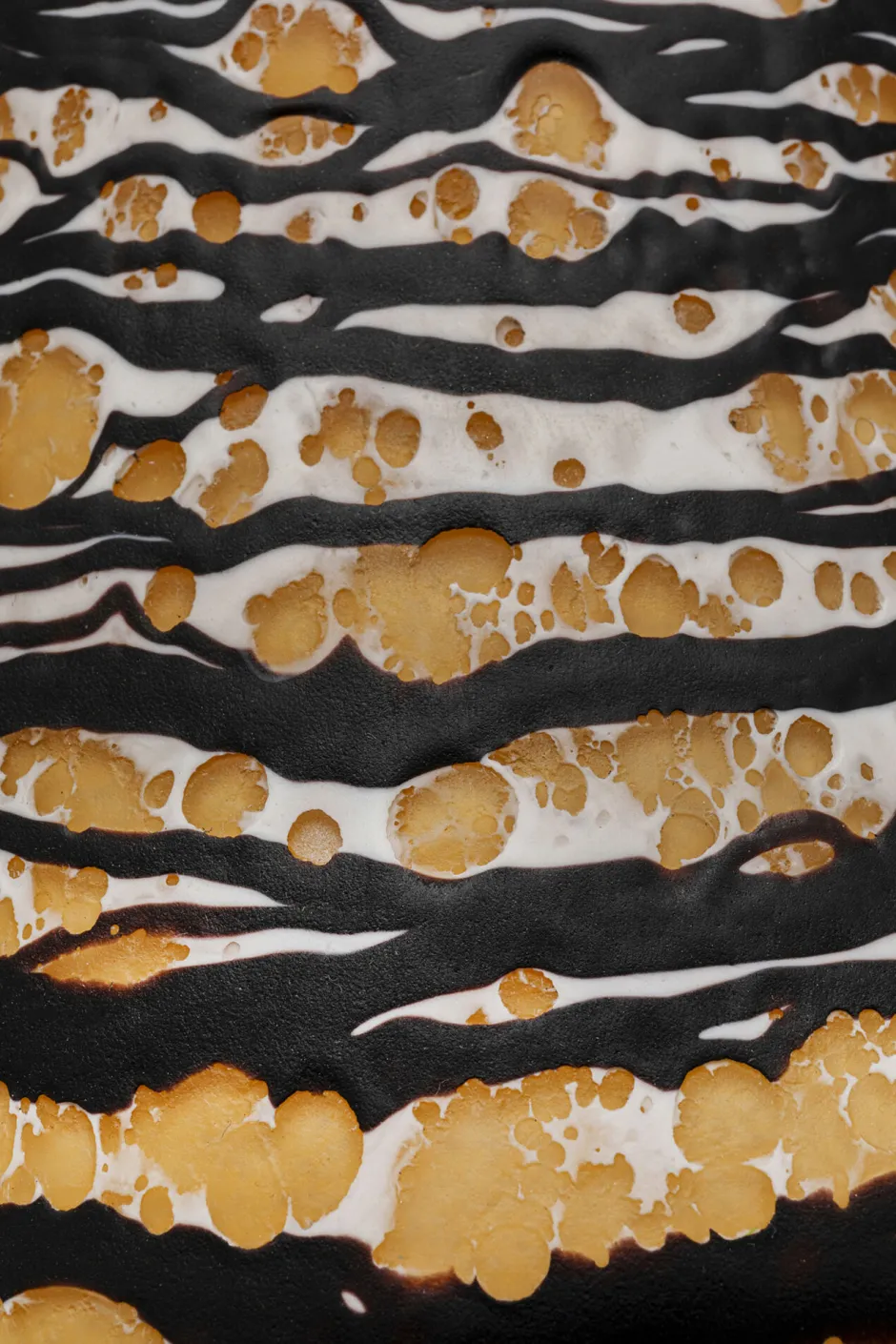 - Die bernsteinfarbene Vase besticht mit abstrakter Musterung und organischer Struktur