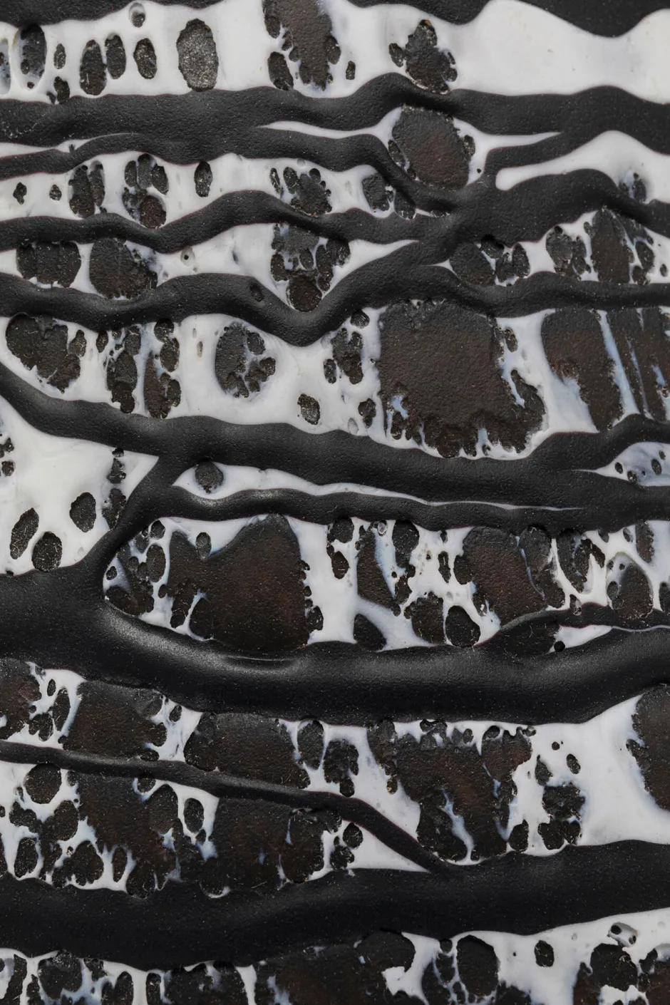 - Die schwarze Vase besticht mit abstrakter Musterung und organischer Struktur