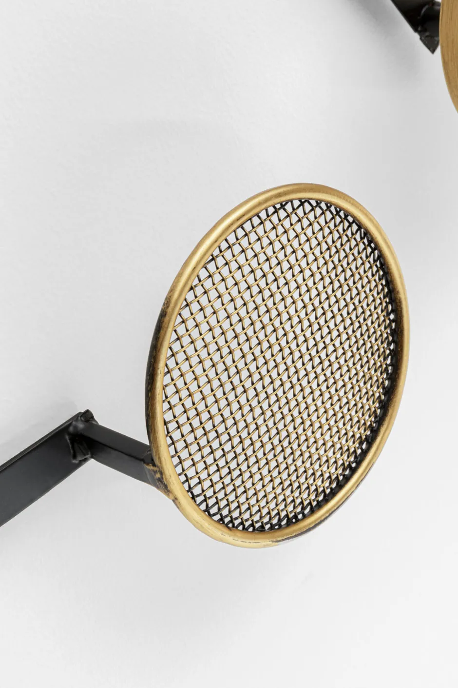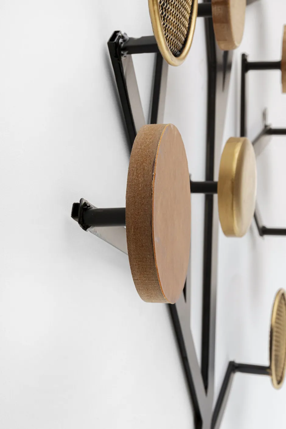 - Schwarze Wandgarderobe aus Metall mit Details in Braun und Gold, 112 x 66.5 x 5.5 Zentimeter (H/B/T)
