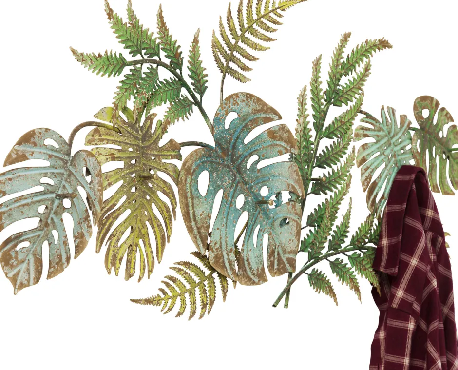 - Liebeserklärung an die Monstera: Stabile Wandgarderobe aus Stahl in Grün und mit 6 Kleiderhaken