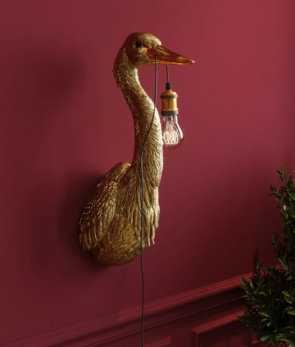 - Extravaganz in einem antiken Goldton: Wandleuchte aus Kunstharz in Form eines Reihers