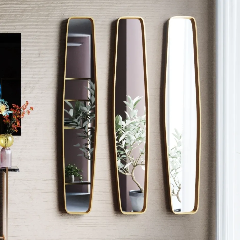- Rechteckiger, goldener Wandspiegel aus Metall, 160 x 40 x 3 Zentimeter (H/B/T)
