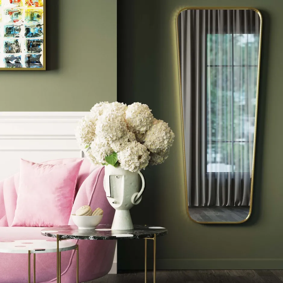 Wandspiegel Opera 65x160cm Wandspiegel aus Metall mit Messing beschichtet, 160 x 65 x 3 Zentimeter (H/B/T)Handgefertigt,…
