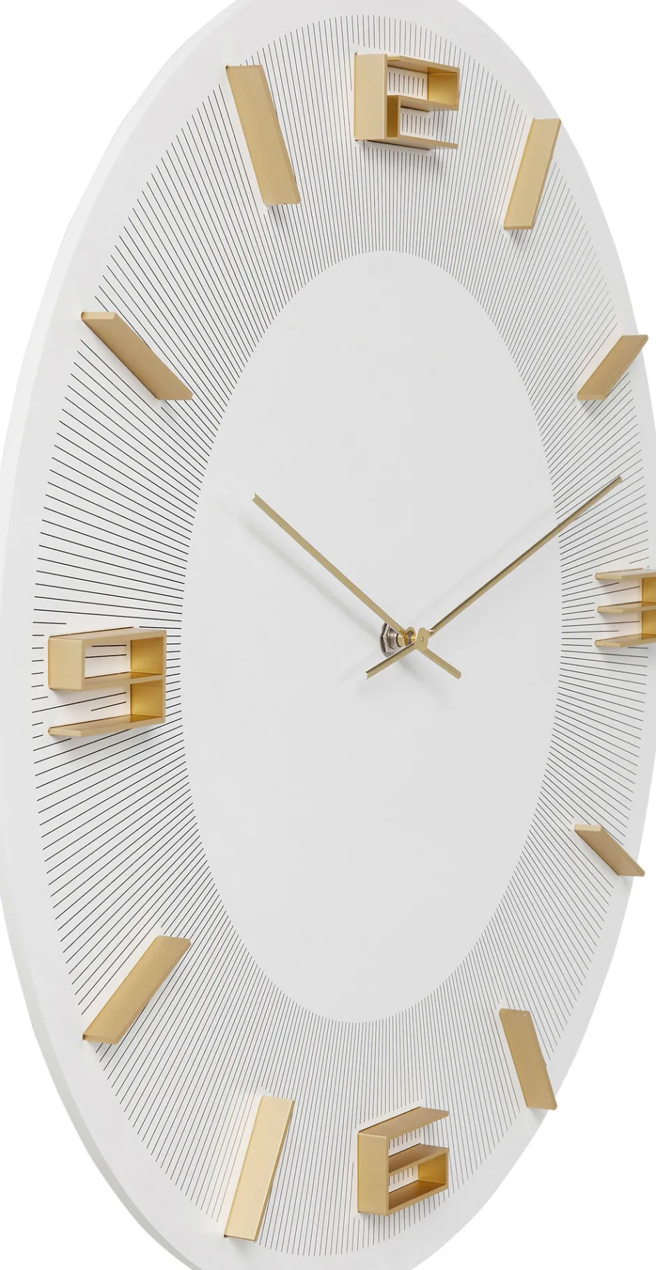 - Passt immer: Weiße Töne und goldene Akzente – diese Uhr passt in zahlreiche modern und klassisch eingerichtete Räume