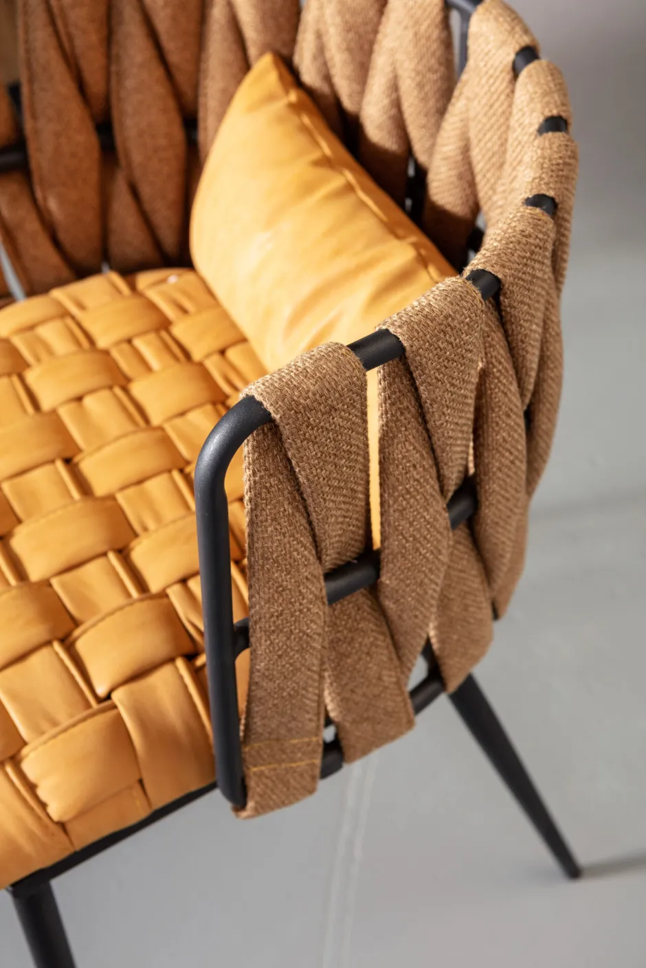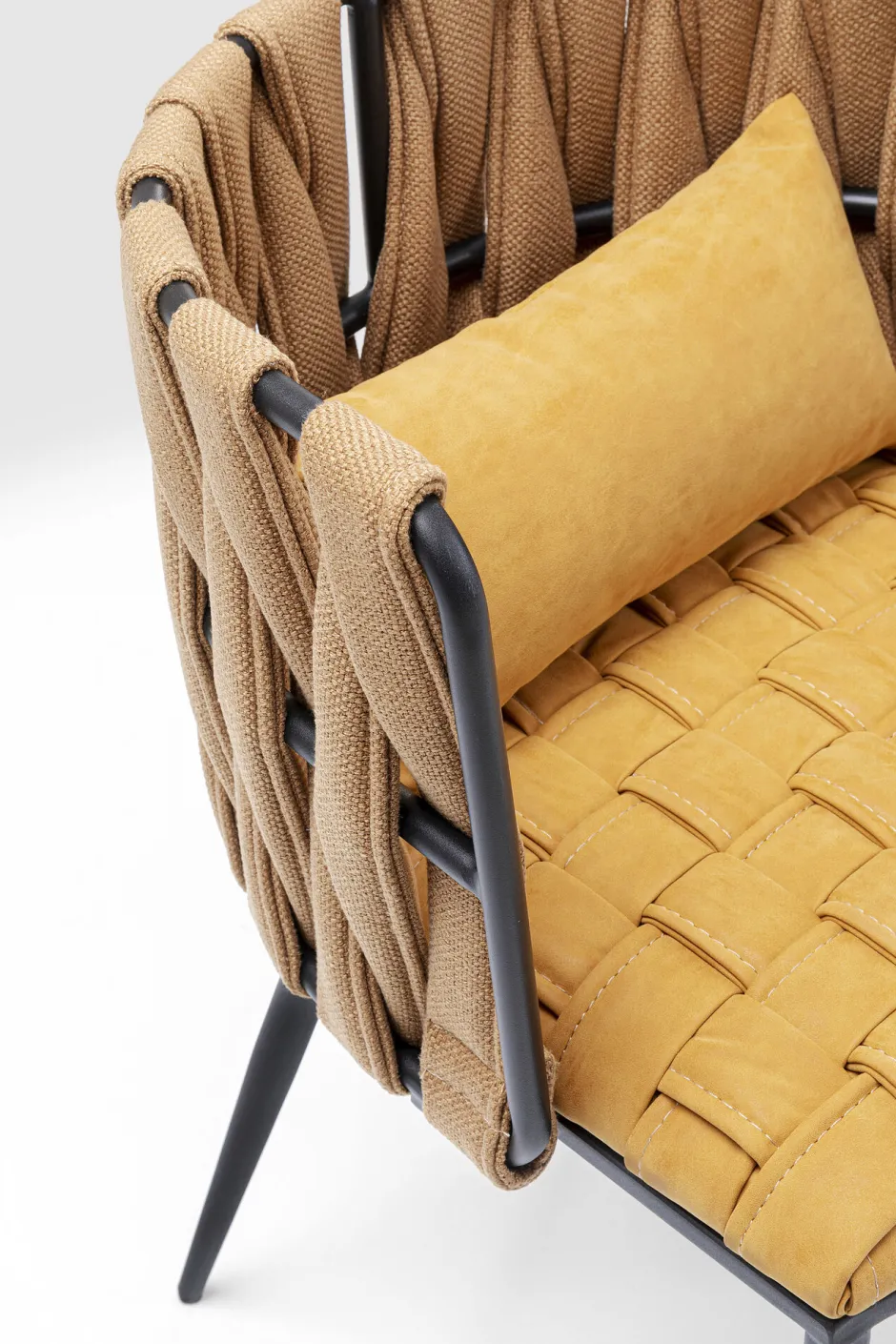 - Gemütlicher Armlehnstuhl, extra stylisch mit Flechtoptik in der Trendfarbe Curry