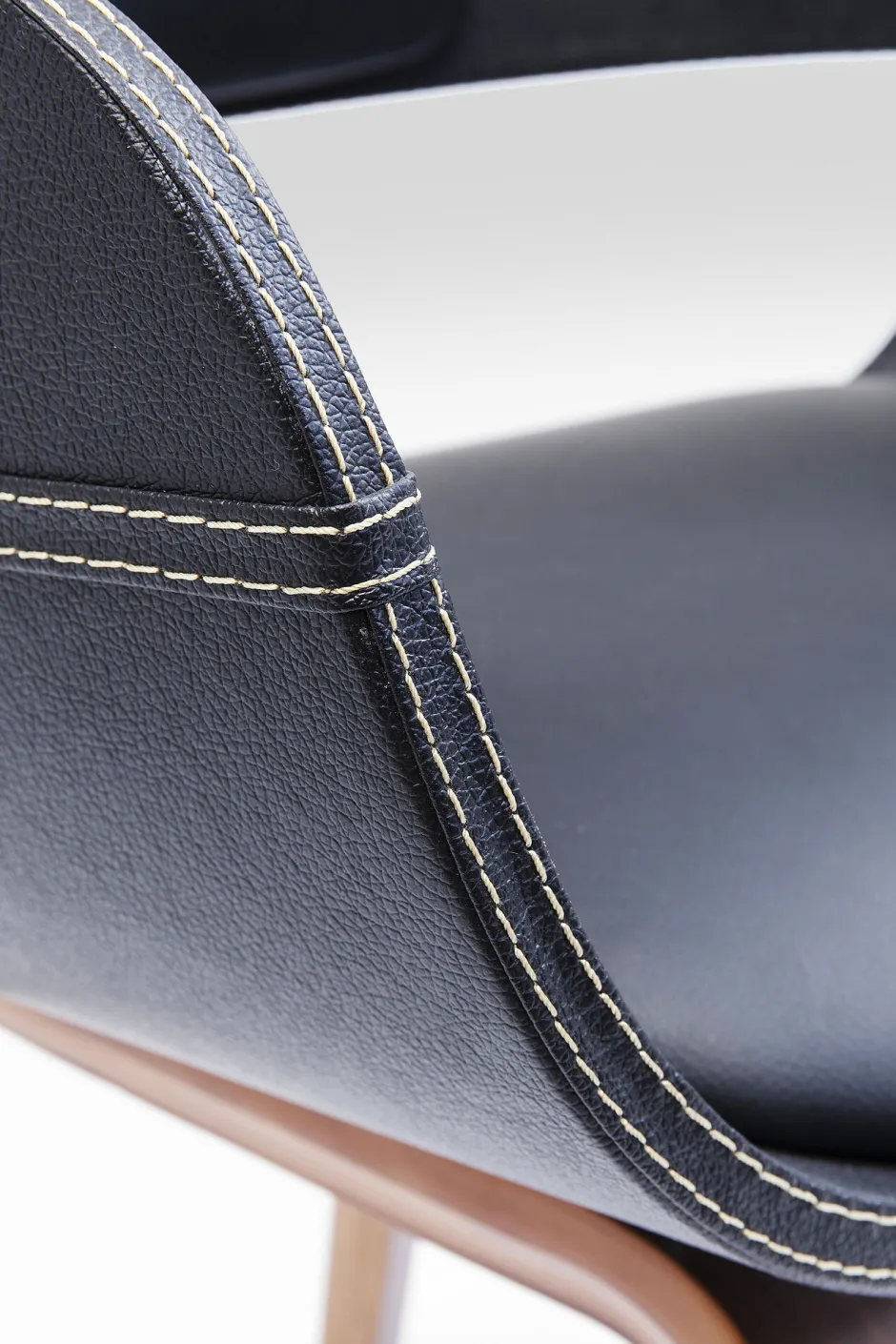 Schwarz und ein kräftiges Braun bilden einen reizvollen Kontrast beim Stuhl Costa Walnut. Auf vier Beinen aus Nussbaumholz liegt die schwarze Sitzfläche mit den ebenfalls schwarzen Arm- und einer schwarzen Rückenlehne, die hohen Sitzkomfort bietet. Kurvenreiche Konturen zeichnen das edle Design dieses Stuhls aus, bei dem die Formensprache trotz allem einen dezenten Ton besitzt. Soviel Eleganz mit wohltuendem Understatement eignet sich gut fürs Konferenzzimmer mit klassisch schönem Ambiente, aber auch fürs Wohnzimmer, das eine gepflegte Behaglichkeit ausstrahlt.Material: (Massivholz Nußbaum, Textil polyvinylbeschichtet, Polyurethan, Polyester)