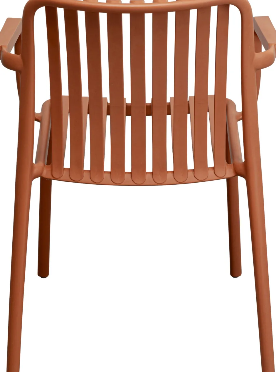 - Der Armlehnstuhl in erdigem Rot schafft ein mediterranes Ambiente in jedem Außenbereich