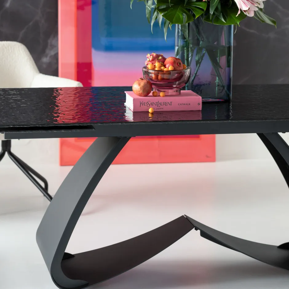 - Exklusive, schwarz gefärbte Tischplatte aus 11 mm starkem ESG-Sicherheitsglas