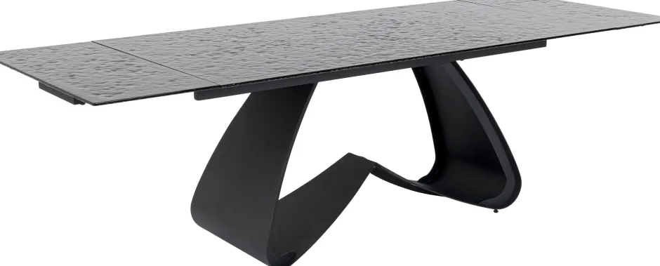 - Ausziehtisch aus Stahl und Glas in Schwarz, von 180 bis 260 cm ausziehbar, Tiefe 98 cm, Höhe 76 cm