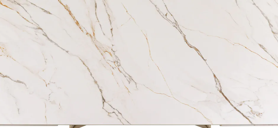 - Die hochwertige Tischplatte aus Keramik schafft ein luxuriöses Ambiente