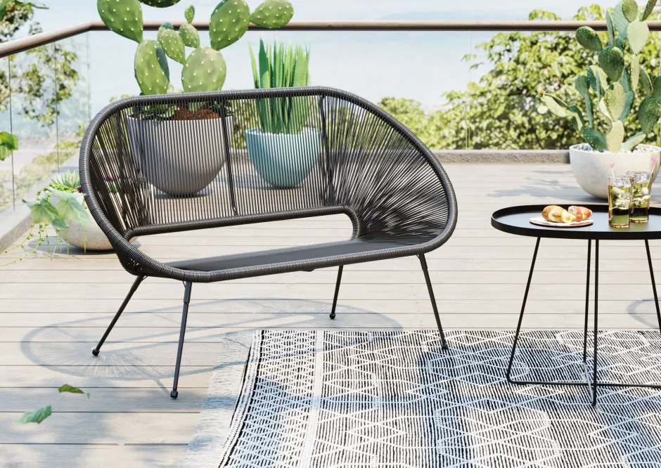- Lounge-Möbel, dass im Wohnzimmer oder auf Terrasse und Balkon gleichermaßen gut aussieht