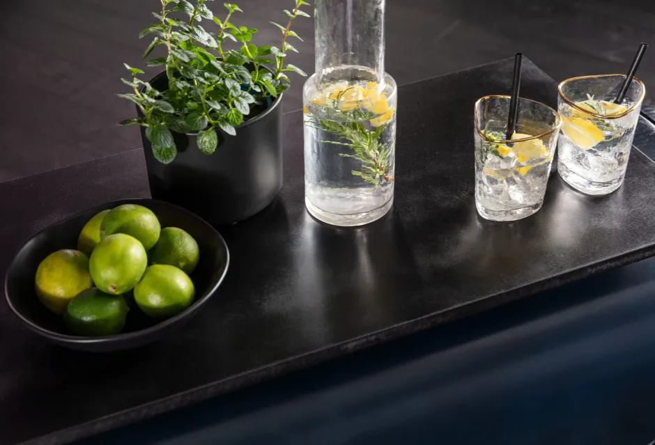 - Integrierter Bartresen aus massivem Mango Holz