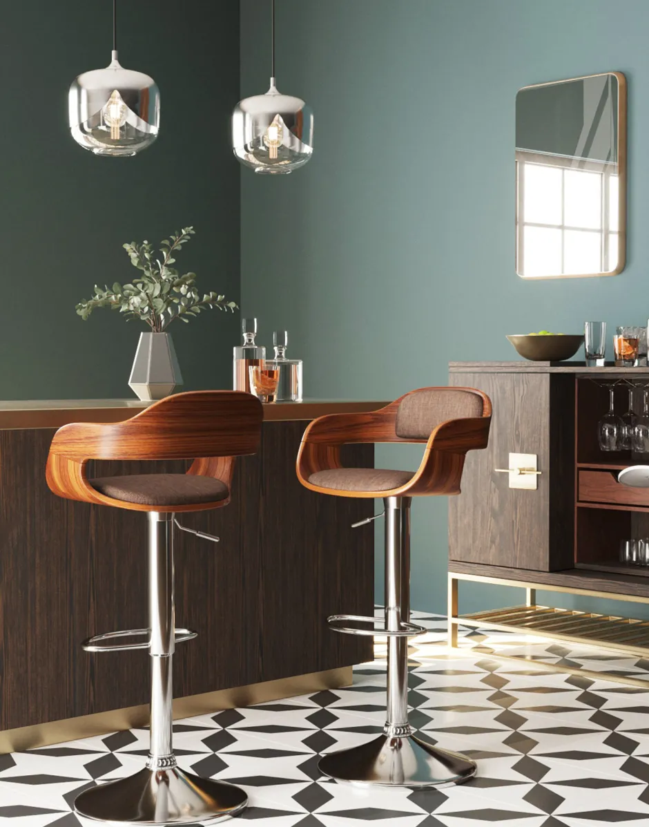 - Ergänzt mit seinem warmen Braunton und der stylischen Retro-Form stilvoll Bar und Küche