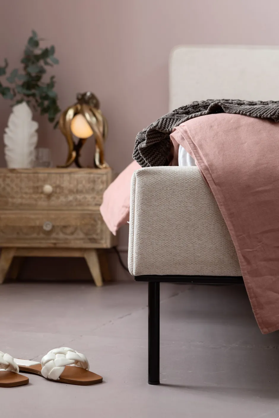 - Klassisches Polsterbett 160x200cm mit Kopfteil in hellem Beige