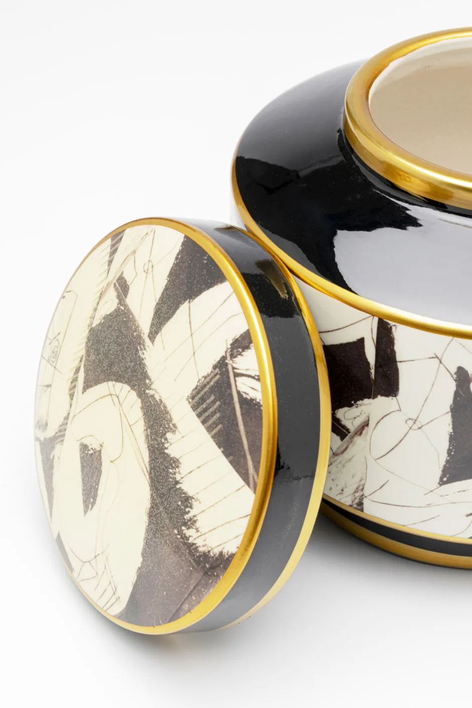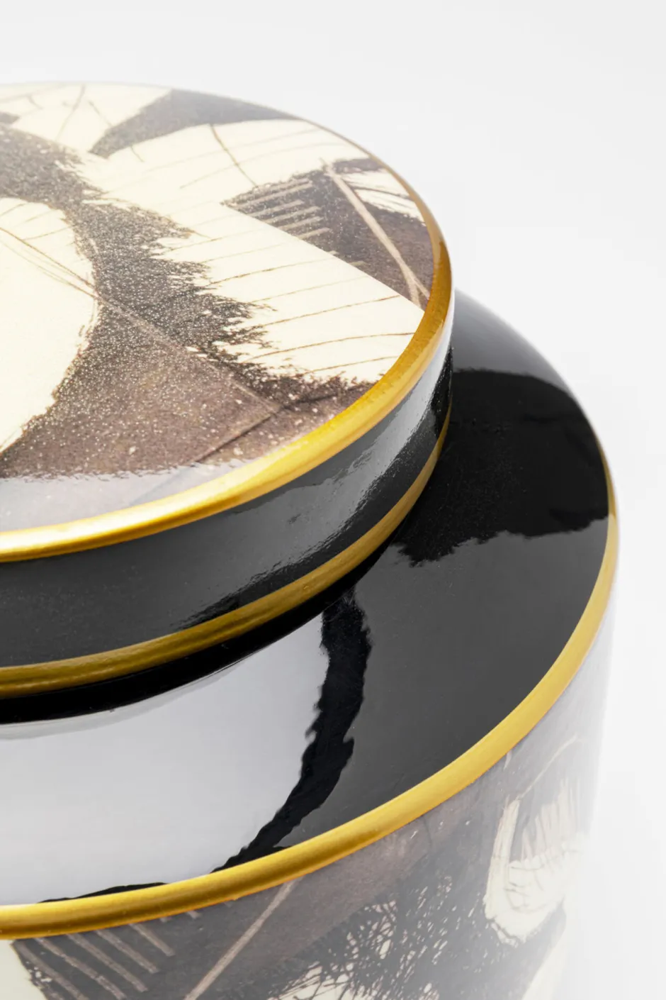 - Gold-glänzende Details runden das kunstvolle Muster in Schwarz und Weiß gekonnt ab