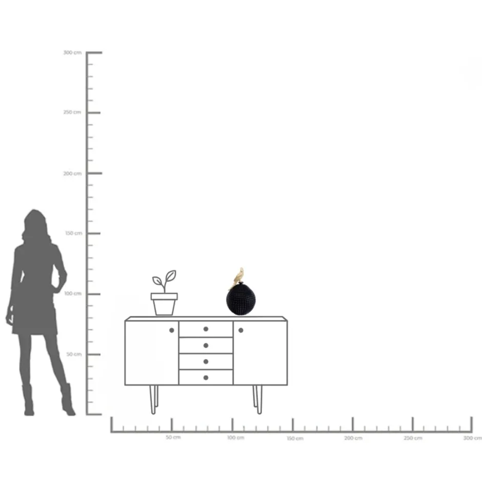 - Dieses XL-Deko-Objekt ist besonders schön: Der goldene Vogel thront auf einer schwarzen Stachelkugel – ein spannungsreicher Strukturmix