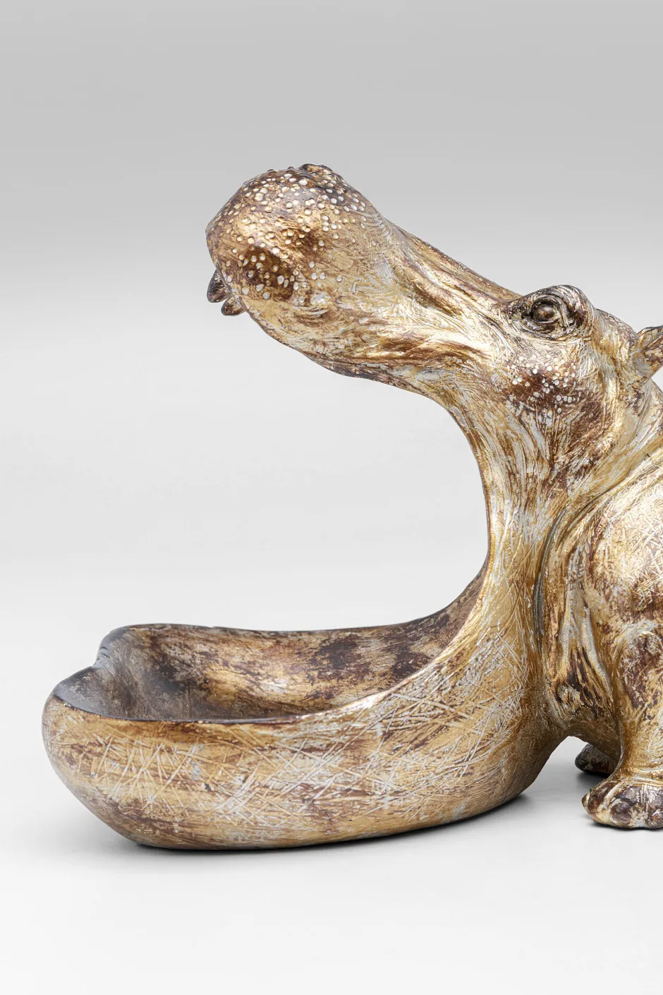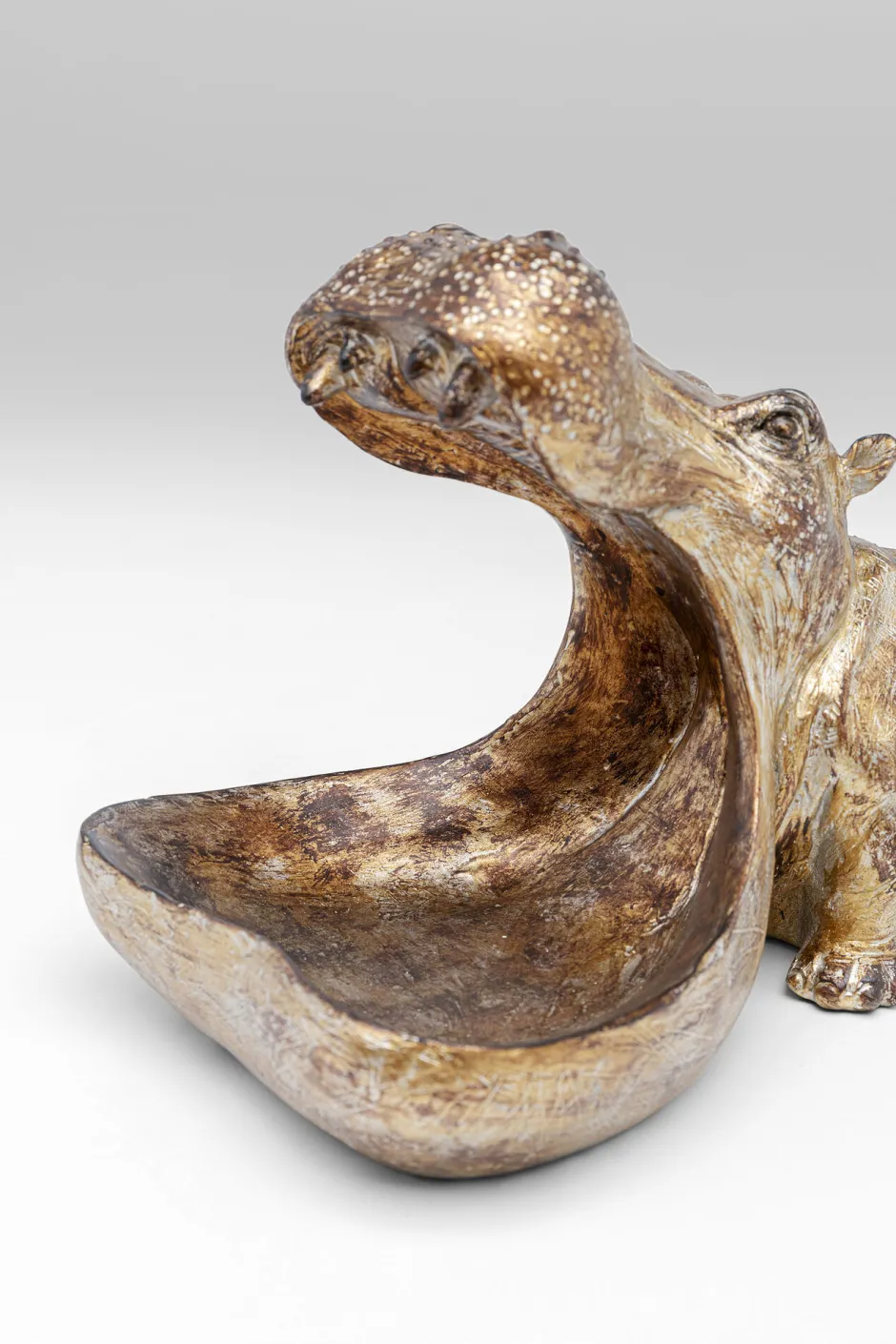 - Deko mit Mehrwert: Das goldige Nilpferd dient mit seinem großen Maul als Schale