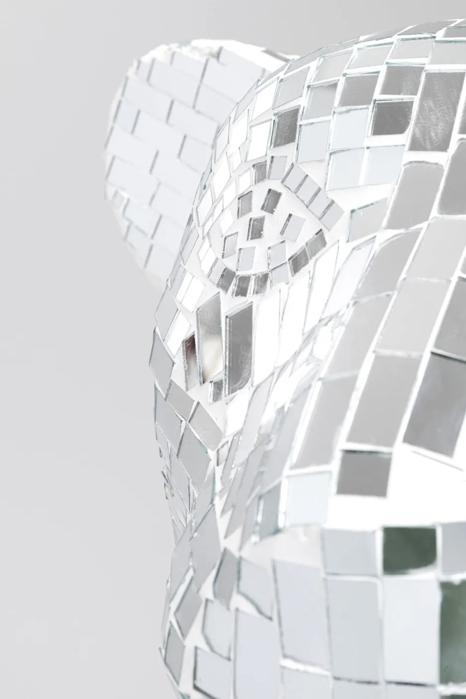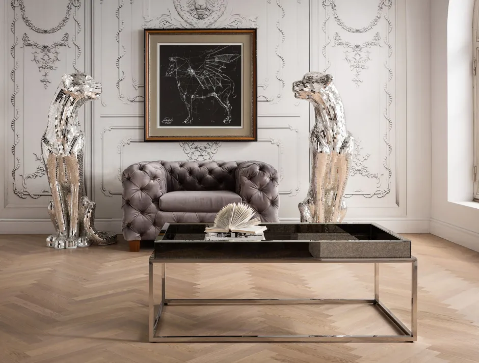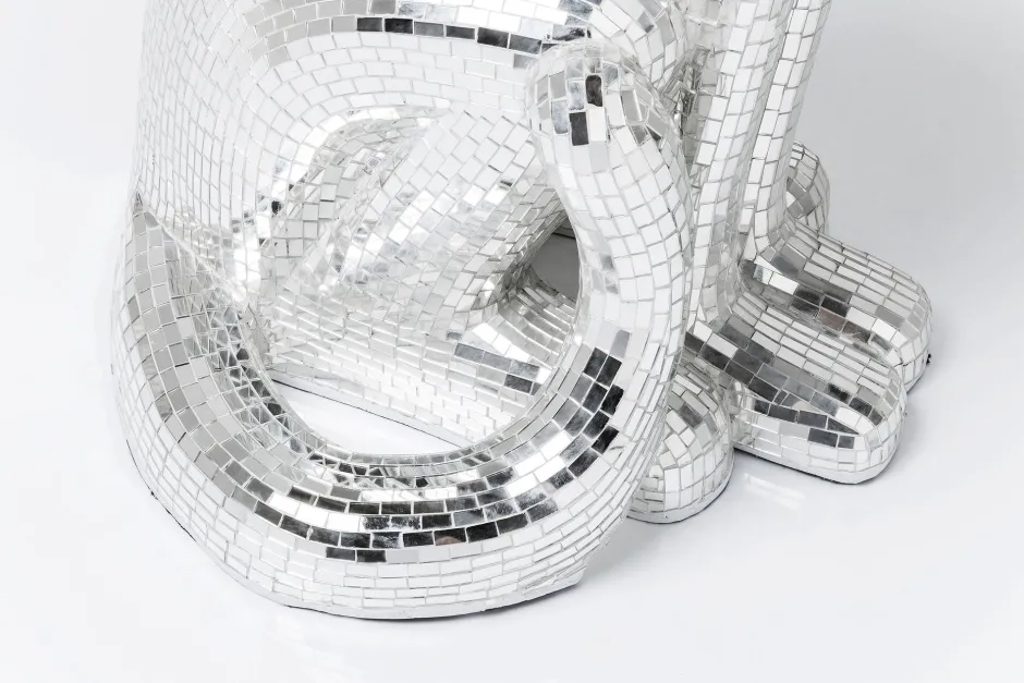 - Die silberne Raubkatze bringt mit ihrer Oberfläche aus Spiegelmosaik Glamour ins Wohnzimmer