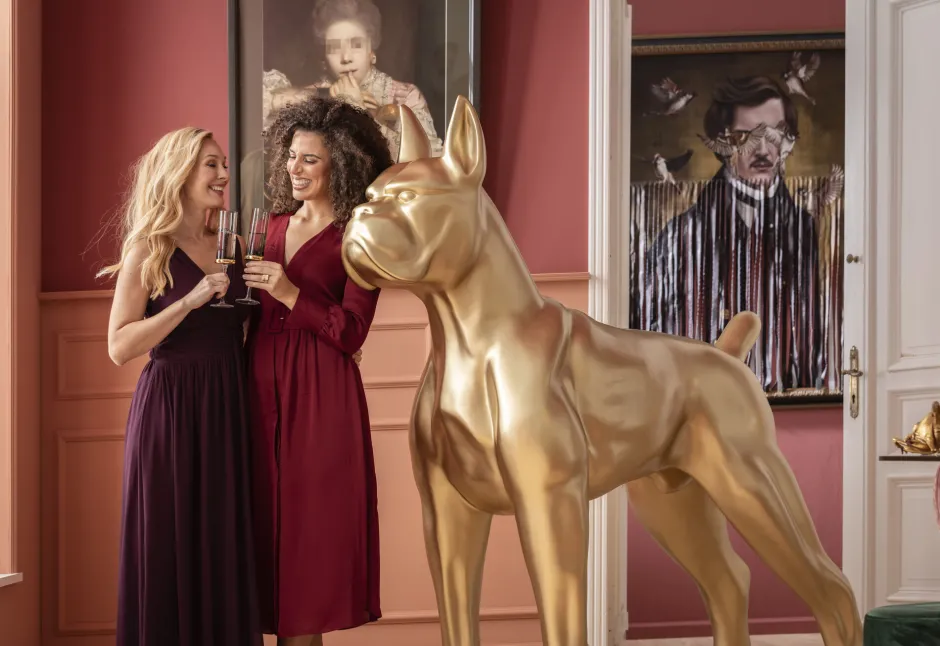 - Große Hunde-Figur in Gold, 180 x 76 x 190 Zentimeter (H/B/T)