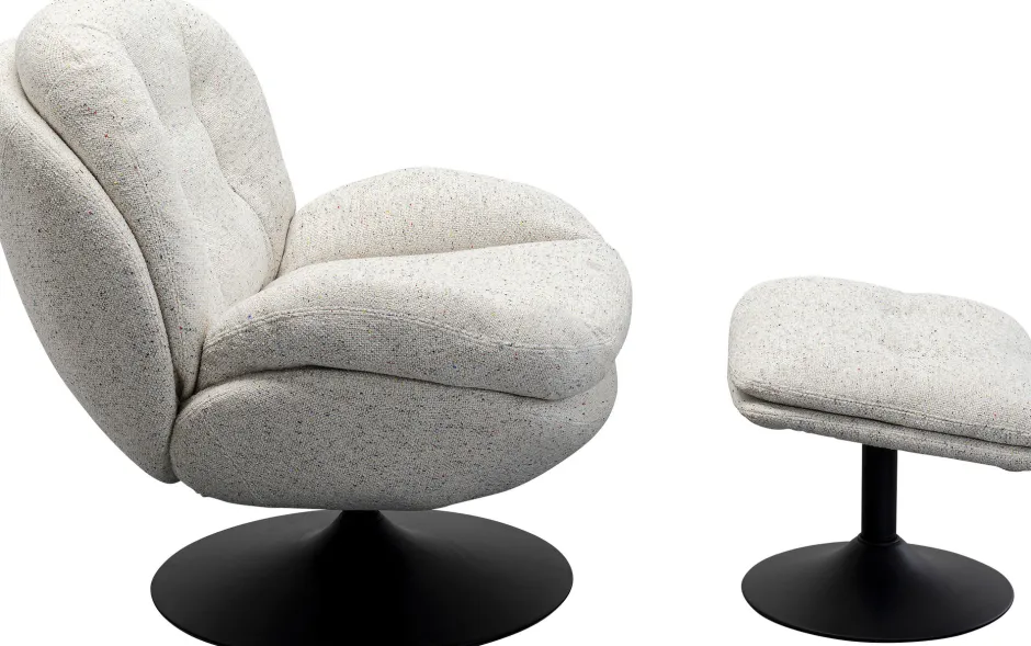 - Eine aufwändige Schaumunterpolsterung sorgen bei diesem Lounge-Sessel und Hocker für wunderbaren Sitzkomfort und Gemütlichkeit