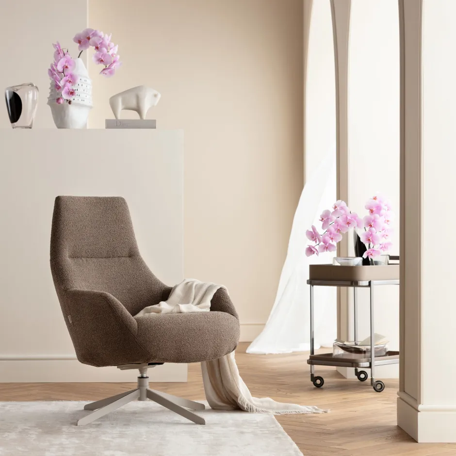- Drehsessel mit Bouclé-Bezug in Braun, 100 x 76 x 81 Zentimeter (H/B/T)