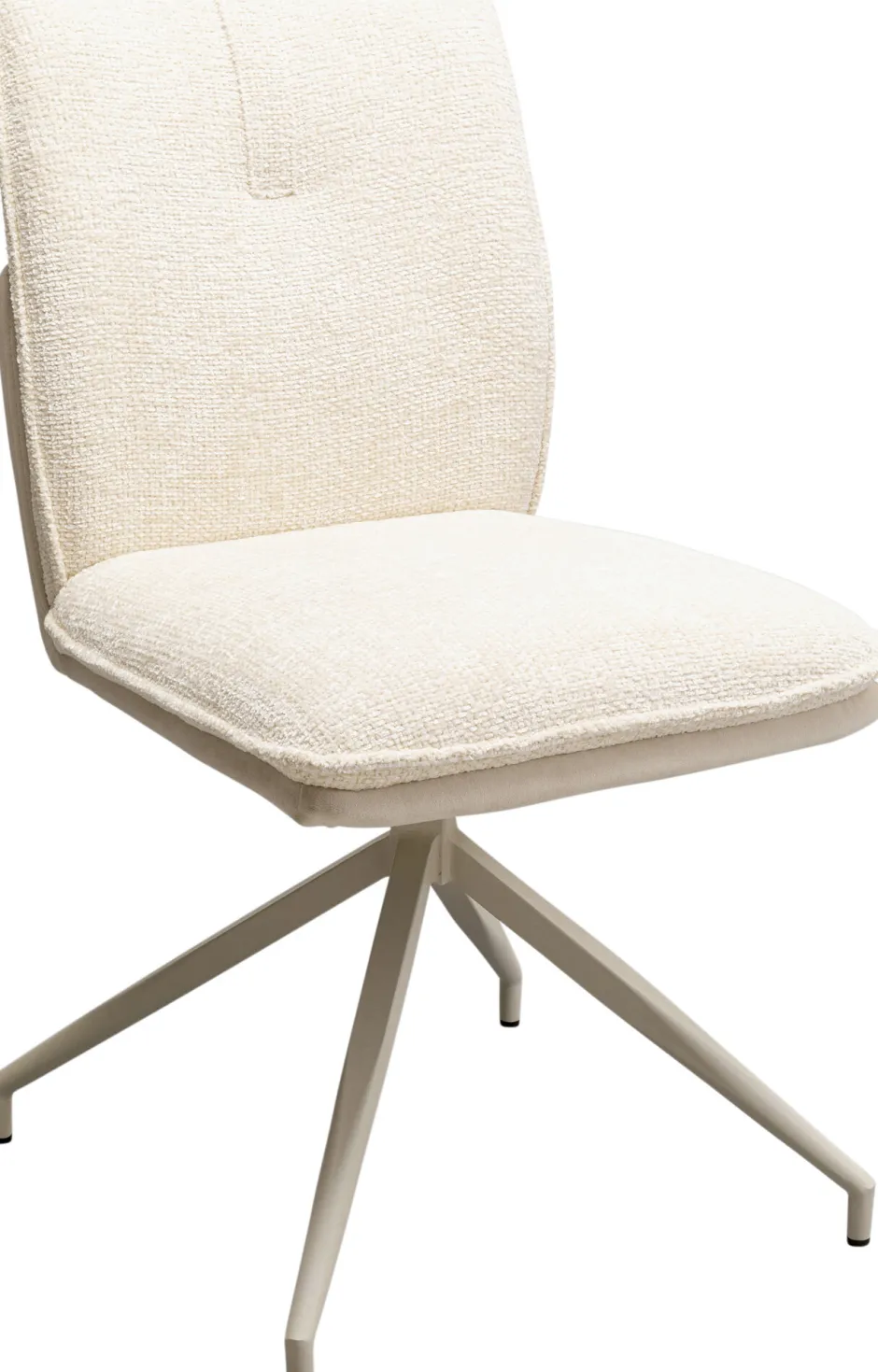 - Der Stuhl besticht durch den edlen Mix aus glattem Bezug und Bouclé-Optik, kombiniert mit abgerundeter Formgebung