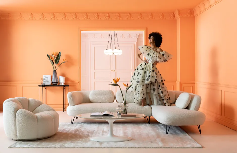 - Rundum bezogen mit angesagtem Bouclé-Polsterbezug