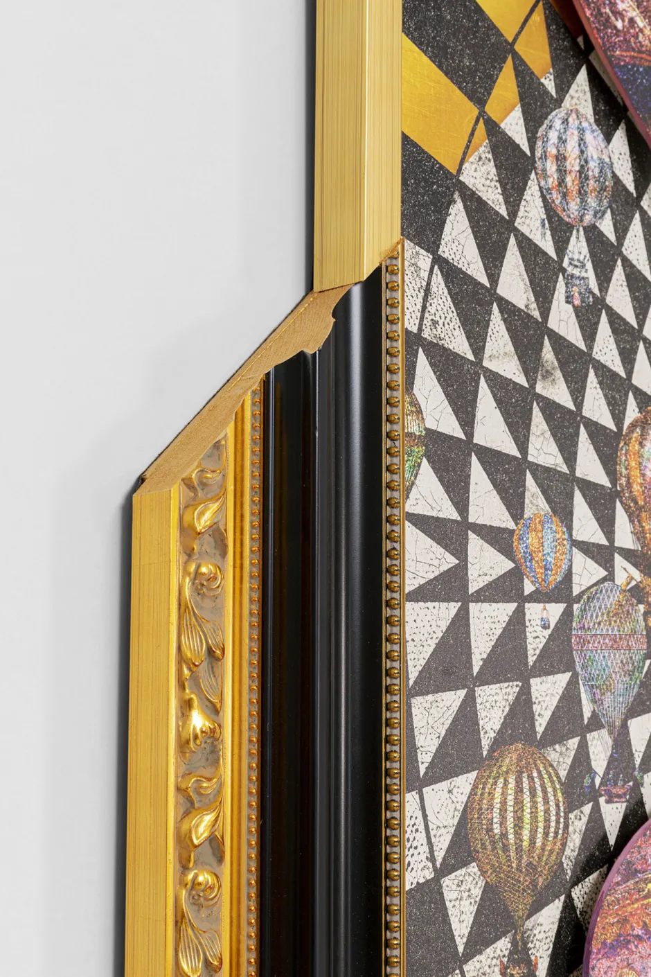 - Einige Elemente wie das Gesicht in der Mitte und die bunten Ballons sind auf das gerahmte Bild aufgesetzt und erzielen so einen interessanten dreidimensionalen Effekt