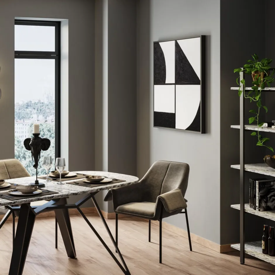 - Grafische Muster machen das abstrakte Wandbild zur modernen Deko in Wohnzimmer und Schlafzimmer