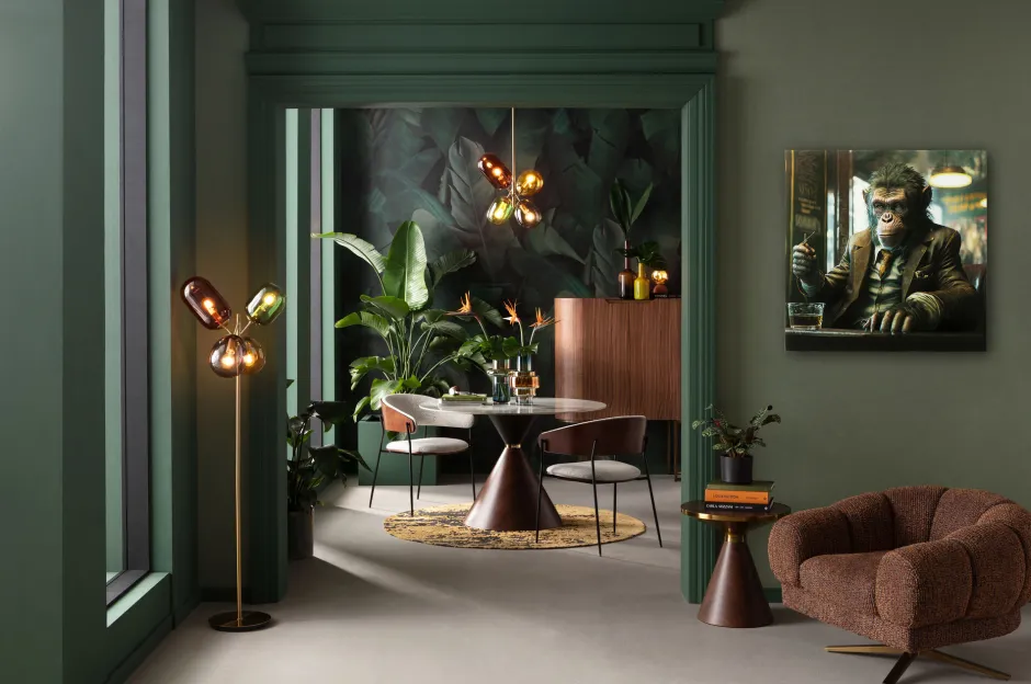 Glasbild Drinking Monkey 100x100cm KARE – Spaß am Wohnen! Material: (Bild: 4 mm Glas Sicherheitsglas ESG foliert, Polyp…
