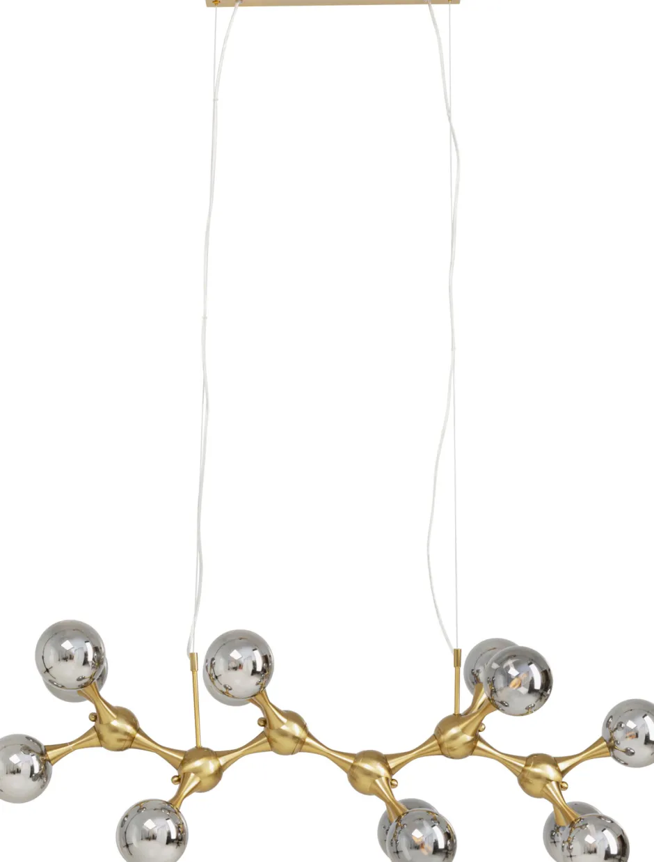 - Modern und mit kühlem Glamour wird die Lampe zum spektakulären Highlight über Esstischen, Kücheninseln oder im Wohnbereich